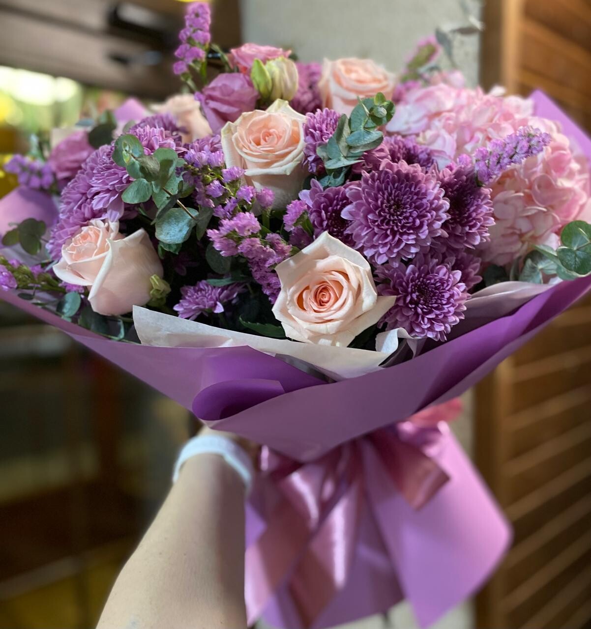 На сбор букета и доставку потребуется до 2-х часов в зависимости от сложности композиии