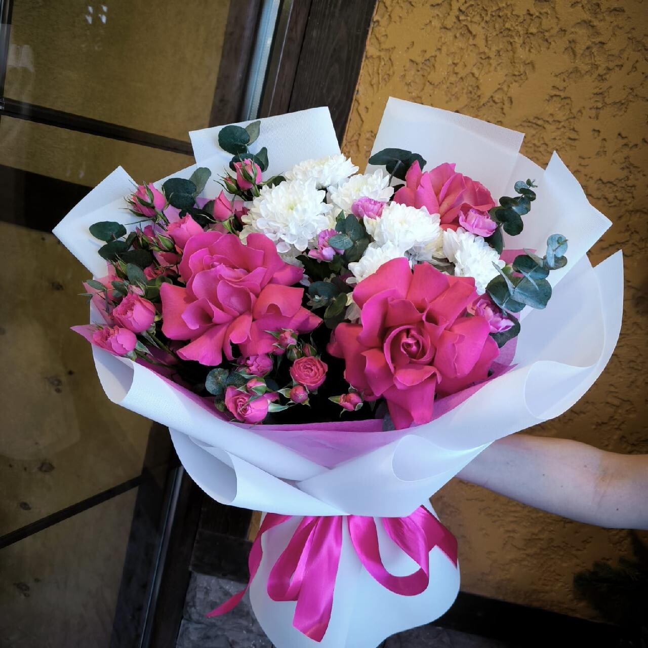 На сбор букета и доставку потребуется до 2-х часов в зависимости от сложности композиии