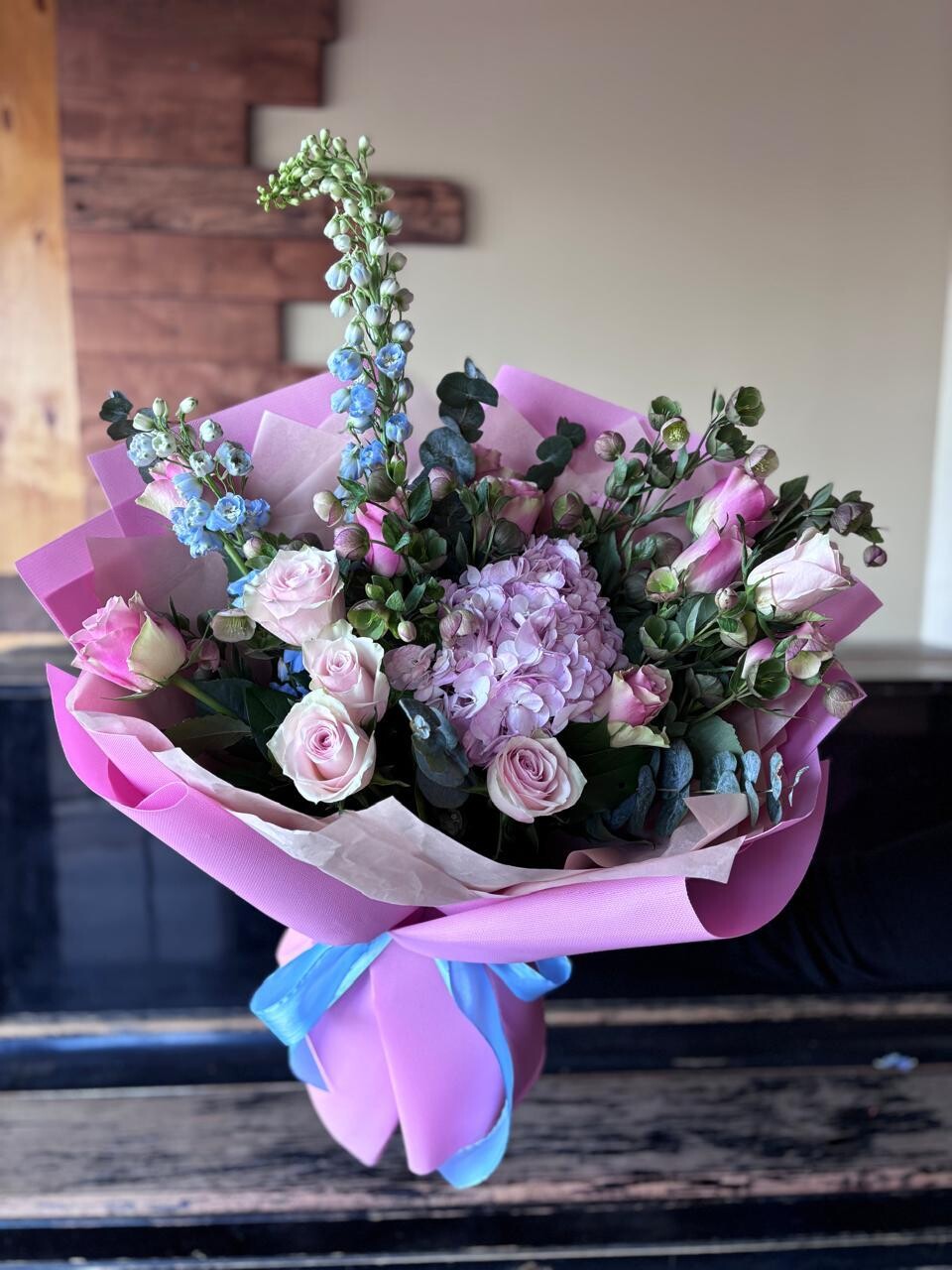 На сбор букета и доставку потребуется до 2-х часов в зависимости от сложности композиии
