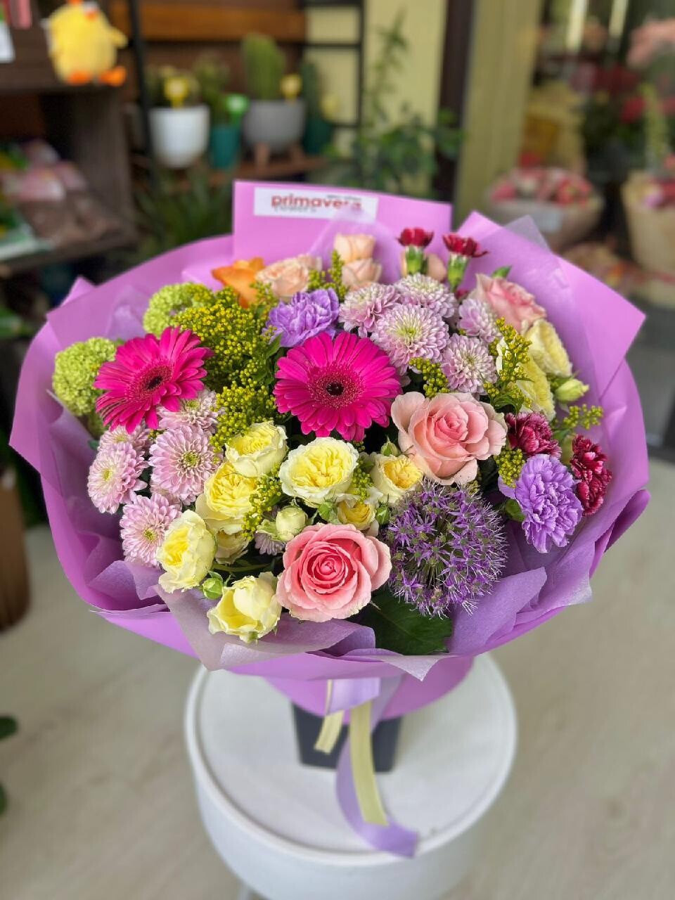 На сбор букета и доставку потребуется до 2-х часов в зависимости от сложности композиии