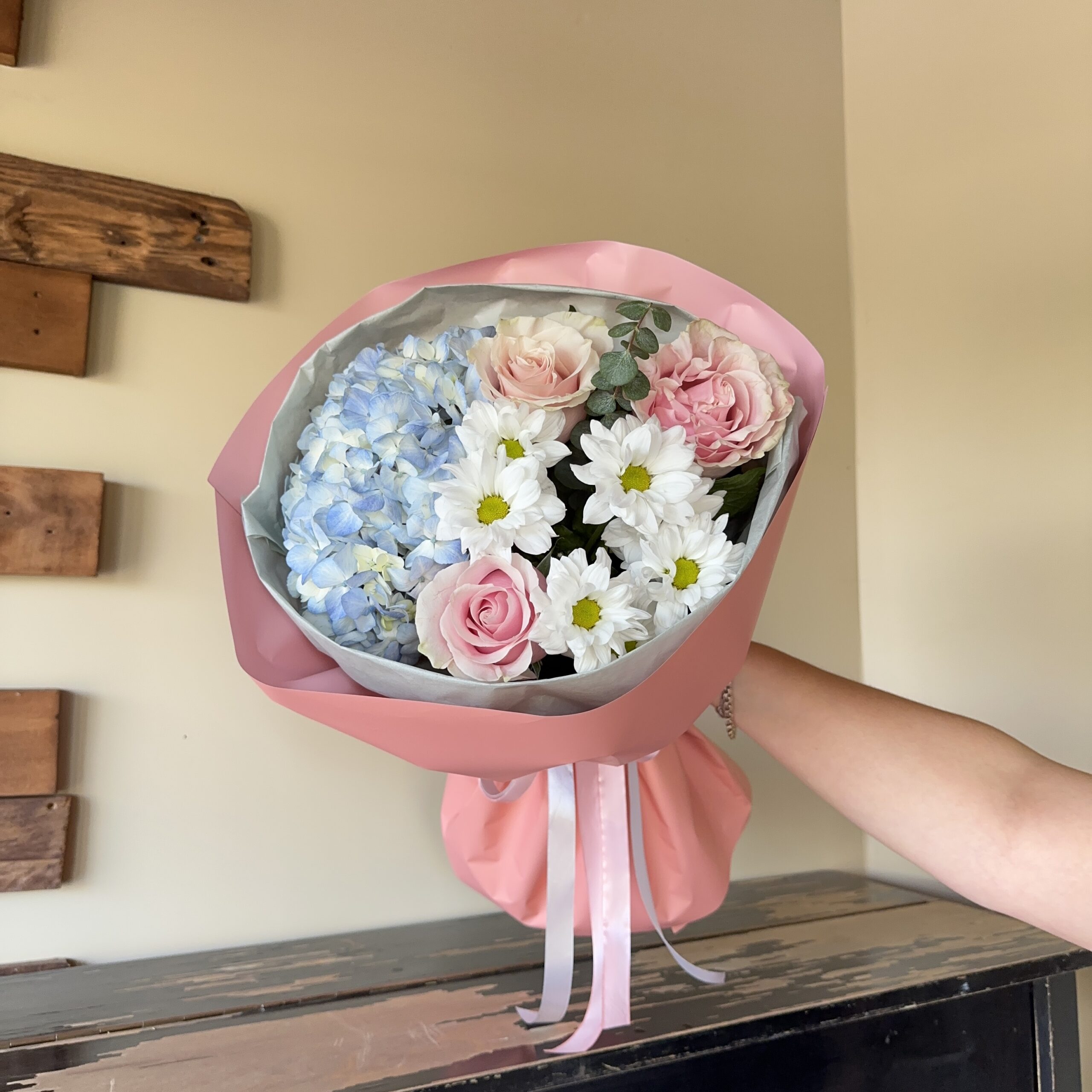 На сбор букета и доставку потребуется до 2-х часов в зависимости от сложности композиии