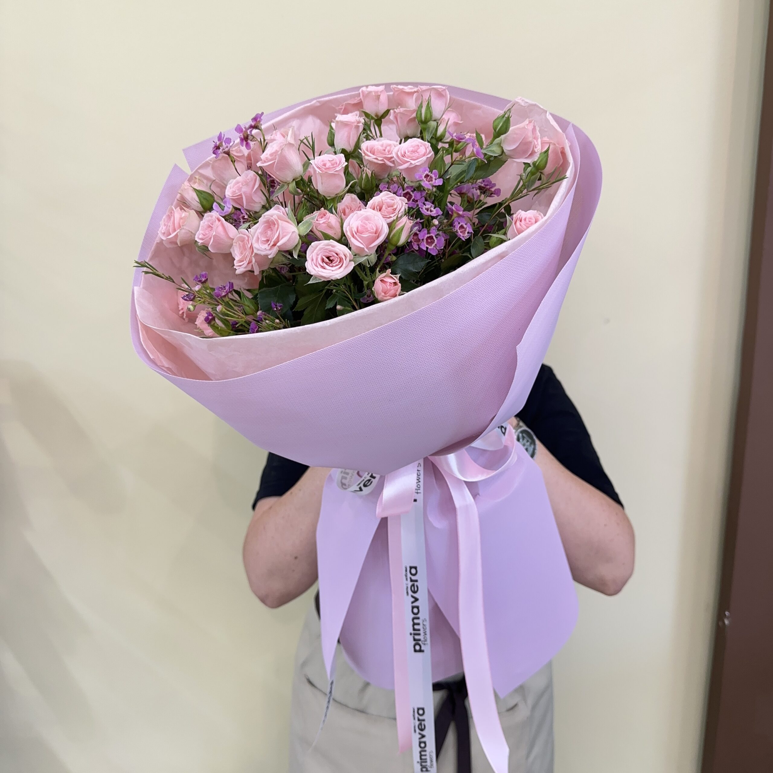 На сбор букета и доставку потребуется до 2-х часов в зависимости от сложности композиии