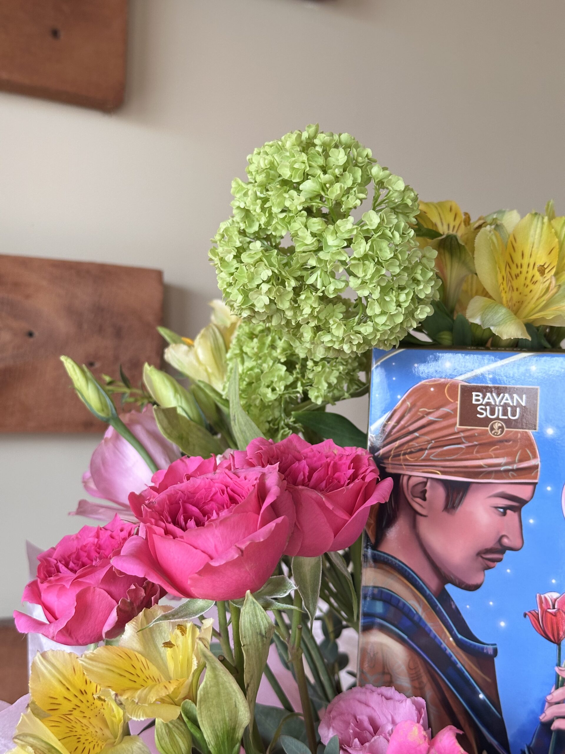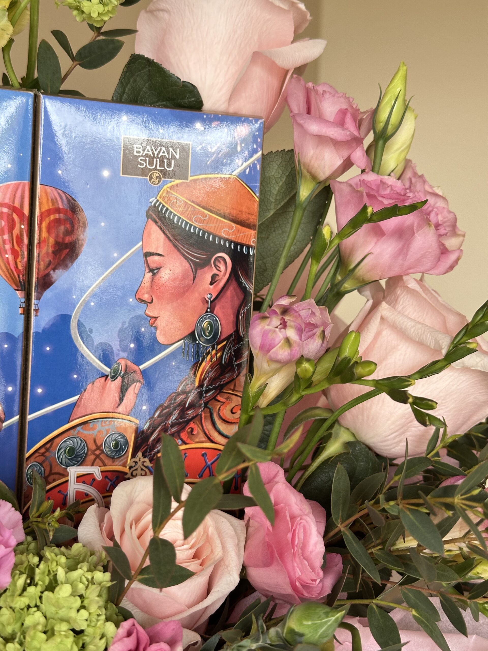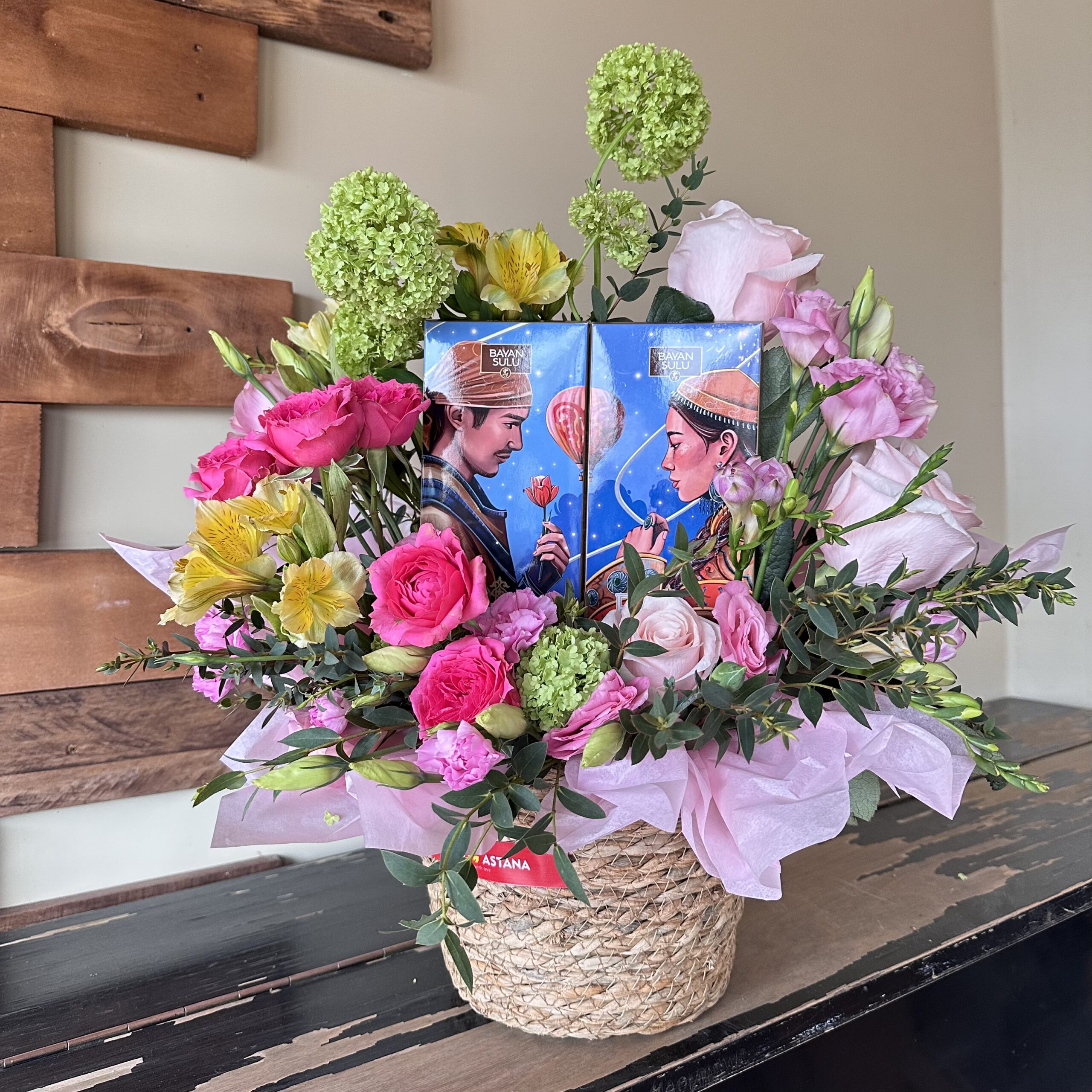 Специально к этому дню мы создали особенную композицию в весеннем составе — с нежными розами, яркими акцентами сезонных цветов и свежей зеленью. Лёгкая, романтичная и очень живая, она передаёт настроение весны и любви.
